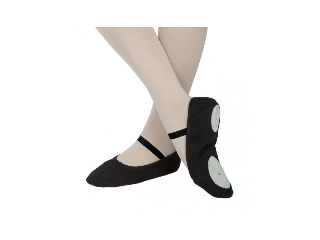 Plátěná baletní obuv. Kožená podešev dělená pro lepší ohyb pří otočkách. Obuv je velice flexibilní. Pro pevnější uchycení boty je v přední části u nártu gumička na stažení.