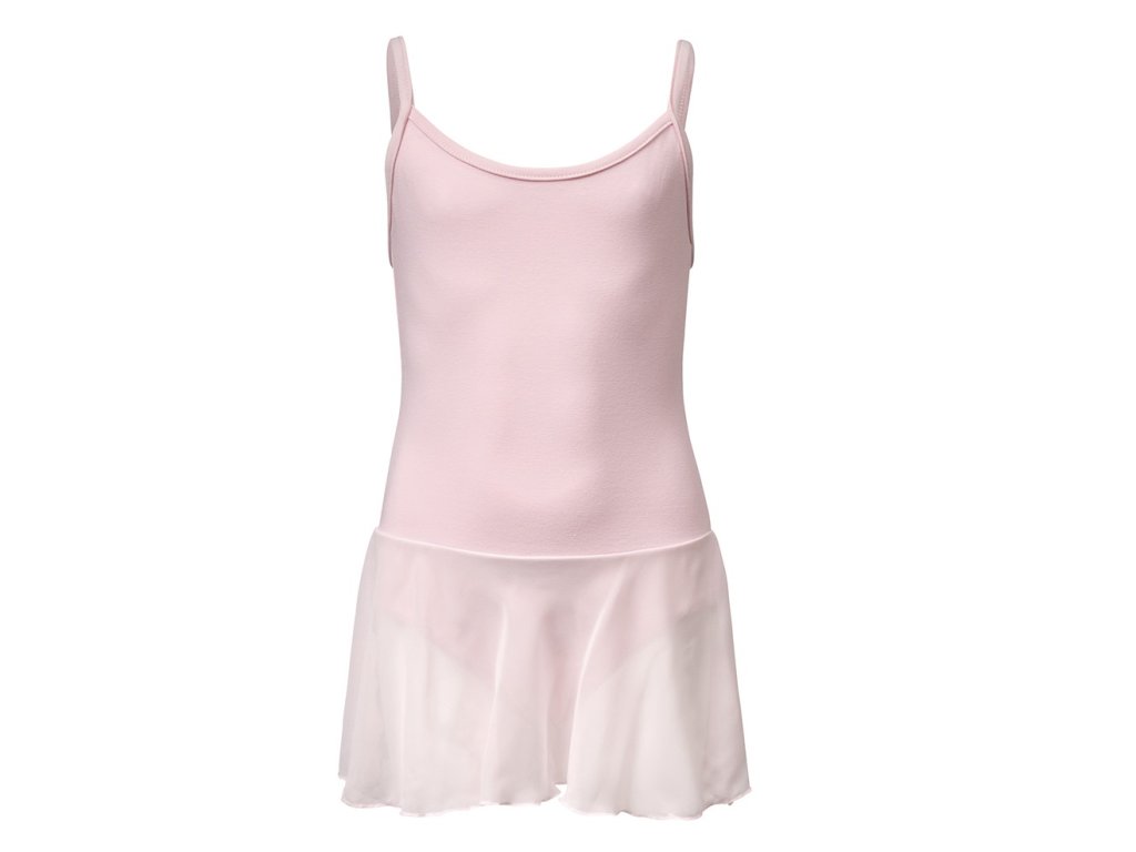 Základní, jednoduchý, s čistými líniemi baletní dres, který patří do každé taneční školy s výukou klasického tance. Dres je z příjemné pružné látky, savý materiál (spandex a nylon), šifonová sukýnka je umístěna v oblasti pasu. Střih perfektně sedí při každé póze, krásně řešený dekolt podtrhne dívčí postavu. Trikot je vhodný na taneční kroužek, gymnastiku a balet, možnost využití i pro další taneční sporty, latinskoamerické tance, aerobic. Splňuje všechny požadavky pedagogů. Mohou vidět práci celého těla a hodina působí velmi esteticky.