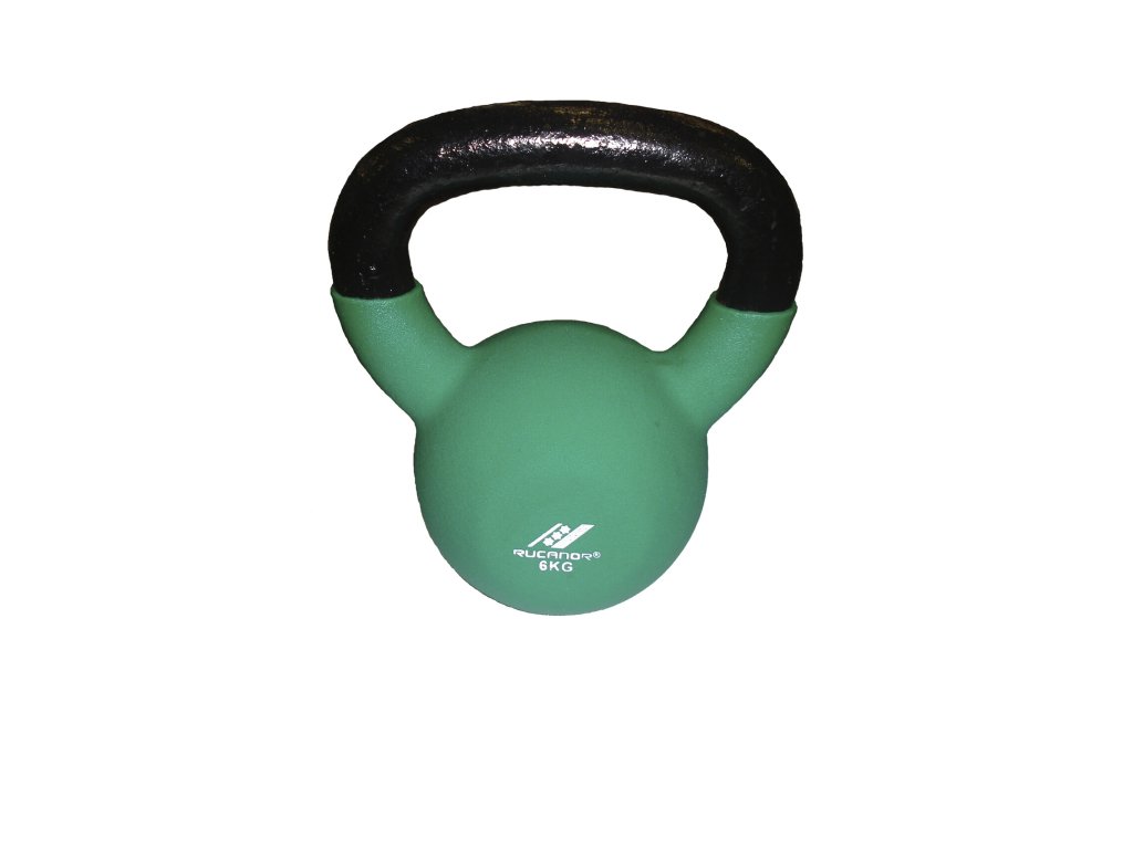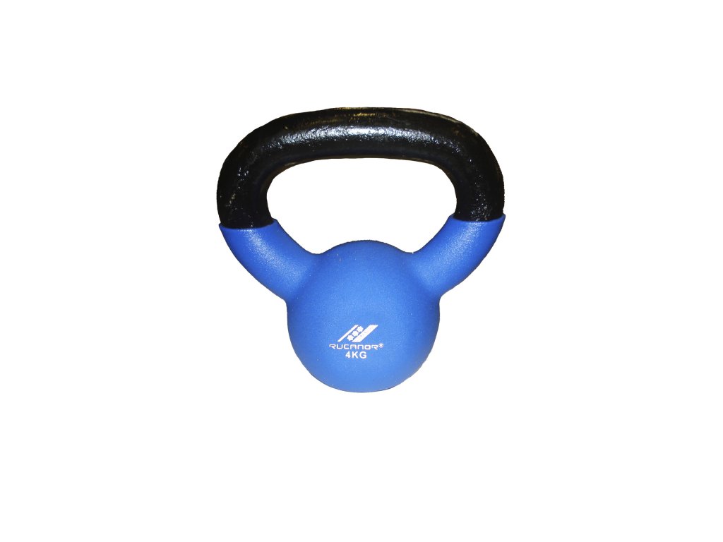 Kettlebell činky ke komplexnímu cvičení. Kettlebell je ze železa a je potažen neoprenem. K dispozici váhy od 2 do 12 kg.